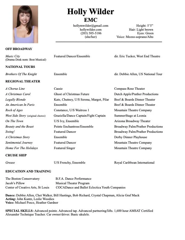 Musical Theater Resume